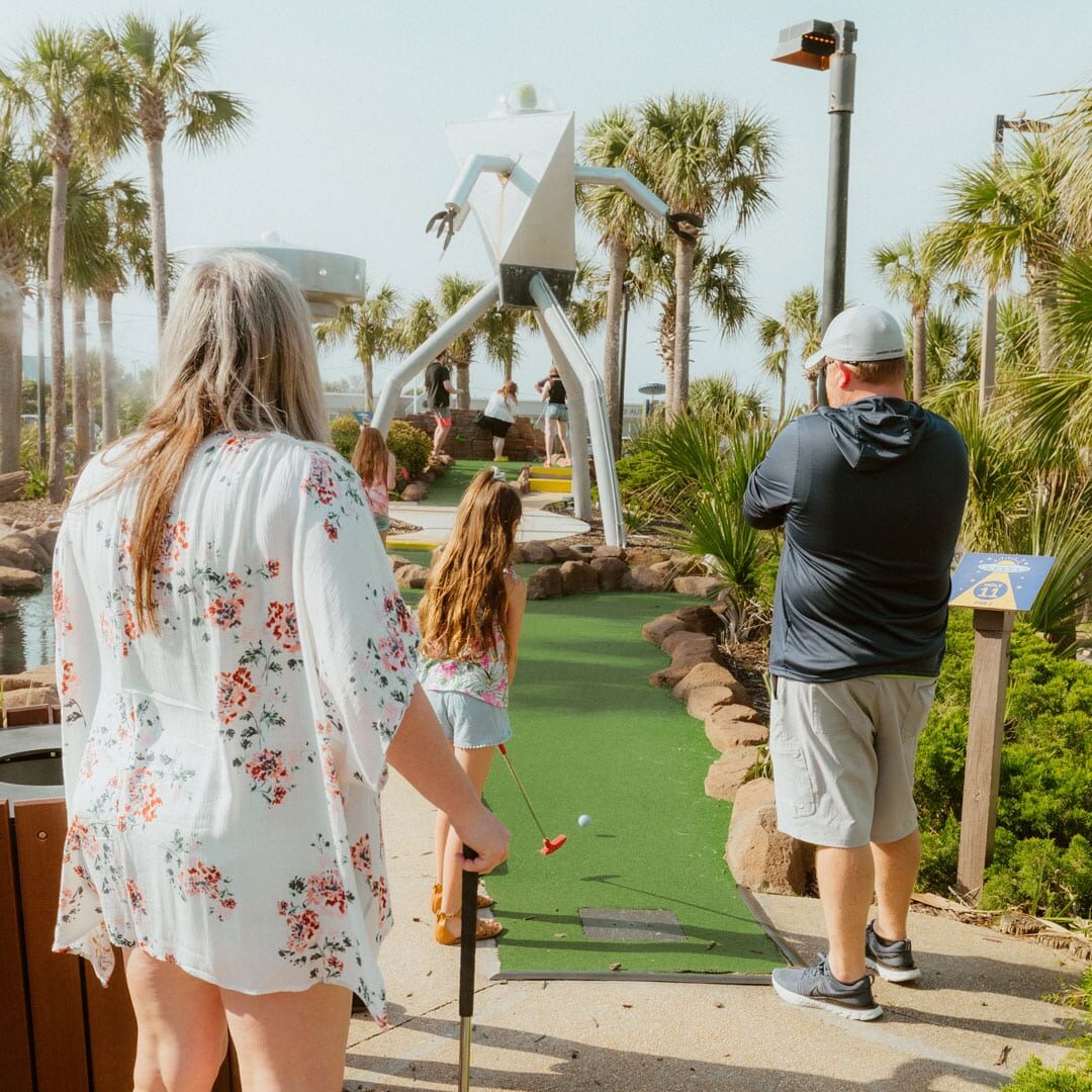 Once lunch wraps up, head over to UFO’s Mini Golf & Arcade for some lighthearted competition. The alien-themed mini golf course is a Pensacola Beach favorite and a great way to switch up the day’s activities.